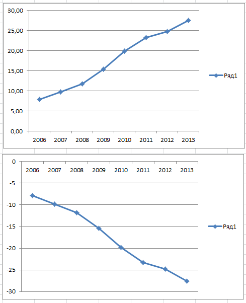 1 У них значения написаны у оси Y. Следовательно, человек вынужден вращать глазами, чтобы увидеть, например, какая была цена в 2008 году. Это неудобно. К тому же, невозможно, понять какое точно было значение у цены в тот год. Значения должны быть над графиком в соответствующих местах.