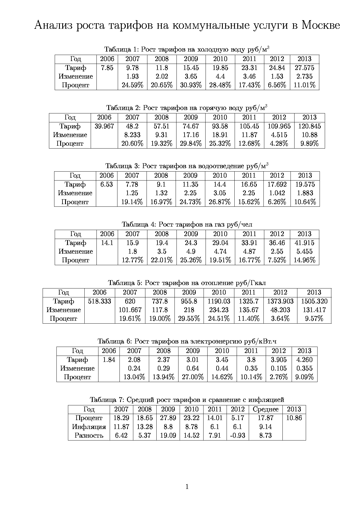 Уважаемые коллеги, я сделал маленькую работу, где анализируется рост коммунальных платежей в Москве. Работа включает 6 таблиц. Впринципе, воспринимается нормально, но какие будут идеи по улучшению качества материала. 2-ю страницу с рассчетами не влючаю сюда.