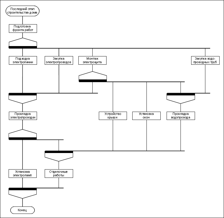 ПАРАЛЛЕЛЬНЫХ ПРОЦЕССОВ ПРИ СТРОИТЕЛЬСТВЕ ДОМАЦиклограмма процесса «Последний этап строительства дома» показана на рис. 153.