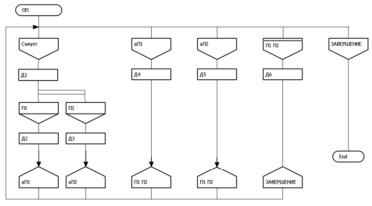 "расшивка" параллельных процессов в силуэте тоже отсутствует.
