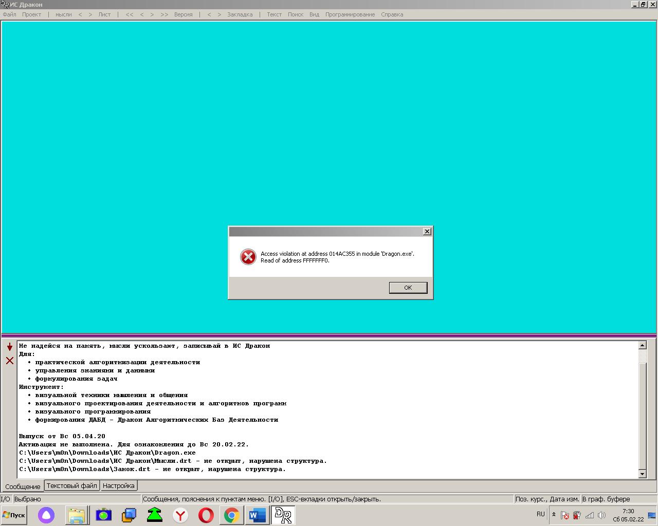 Дракон, который скачан по ссылке http://drakon-practic.ru/ и все примеры. Открываются.... Проверил на винде 7 64. И на винде 11 64.