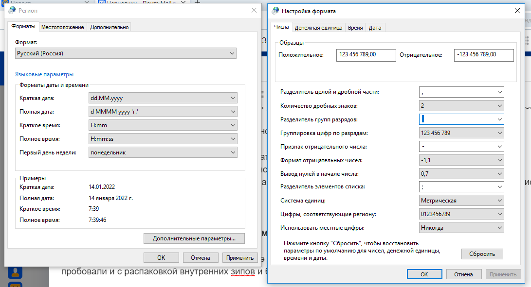 Разделитель целой и дробной части: , (запятая)"