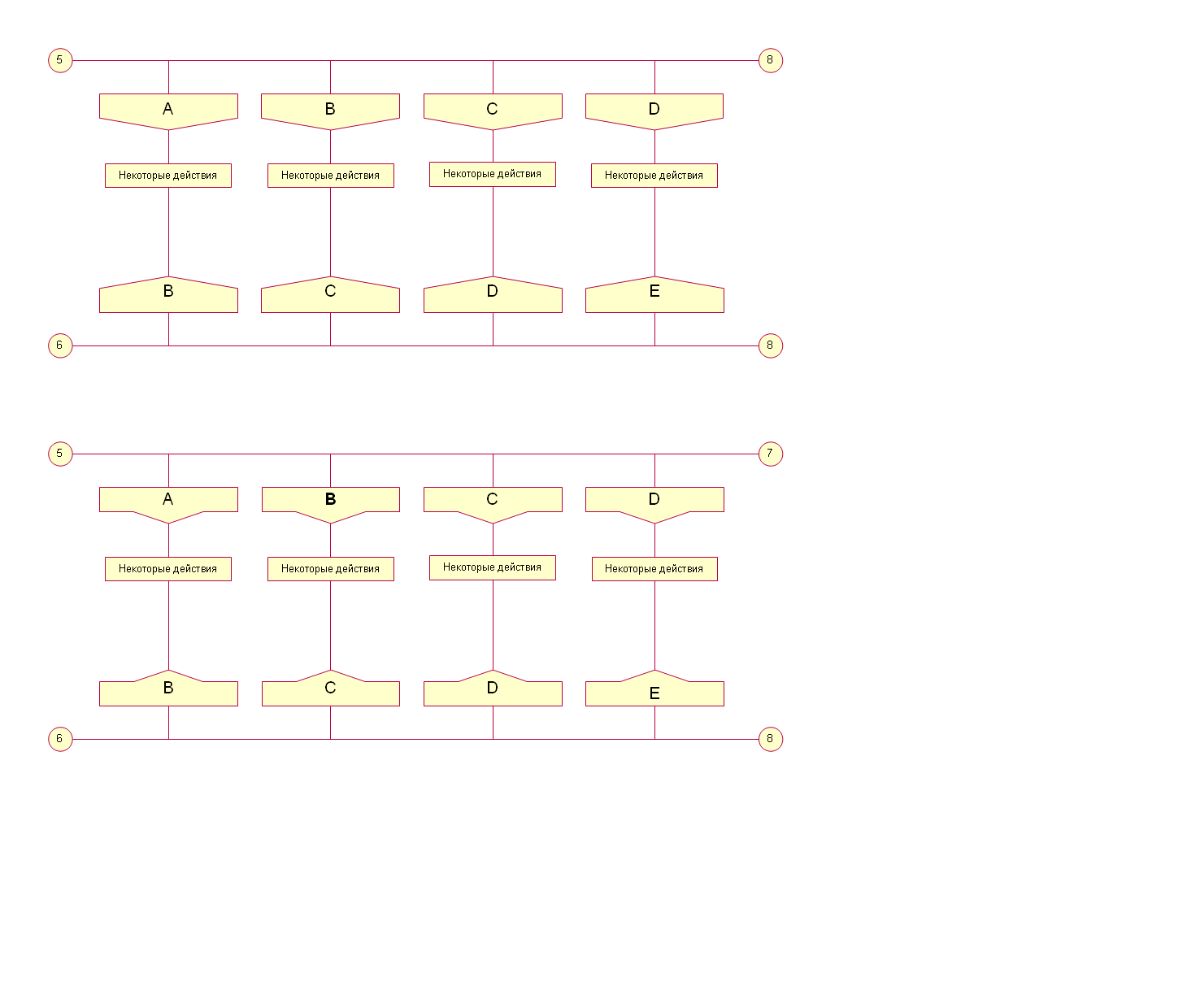 в одну ветку (и даже в две ветки). В этом случае иконы "Начало цикла