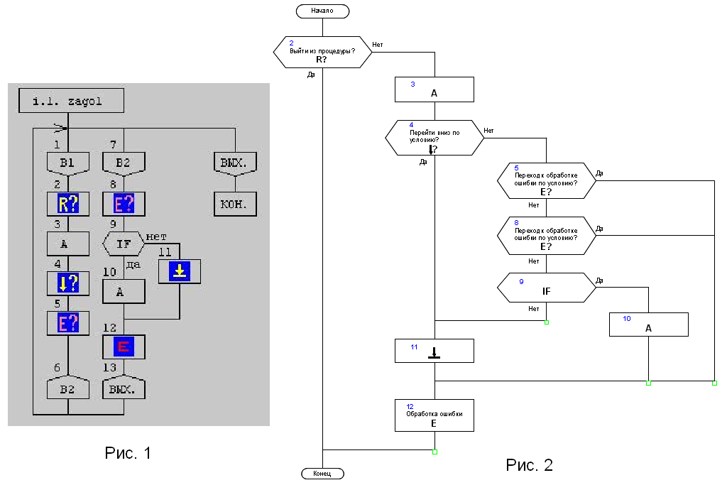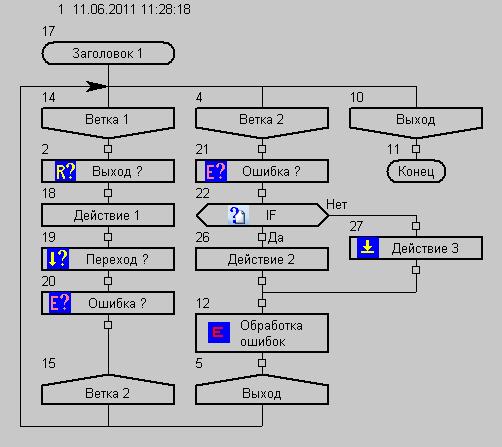 Кстати "хулиганский" переход от действия 4 к действию 11 в языке ДРАКОН