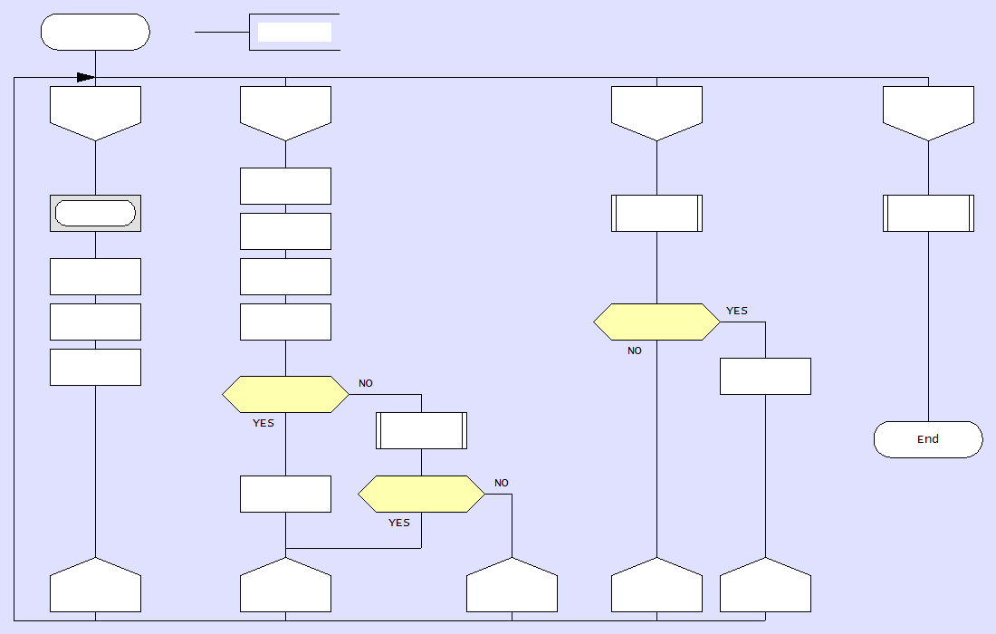 7) Главный маршрут второй и третьей веток зациклен веточно. Но условие цикла точно не задано. Можно лишь догадываться, что шаг цикла (итерация) связан с закупом/реализацией и спецучётом конкретной партии ТМЦ. Но нет соответствующего параметра цикла и его явного продвижения.