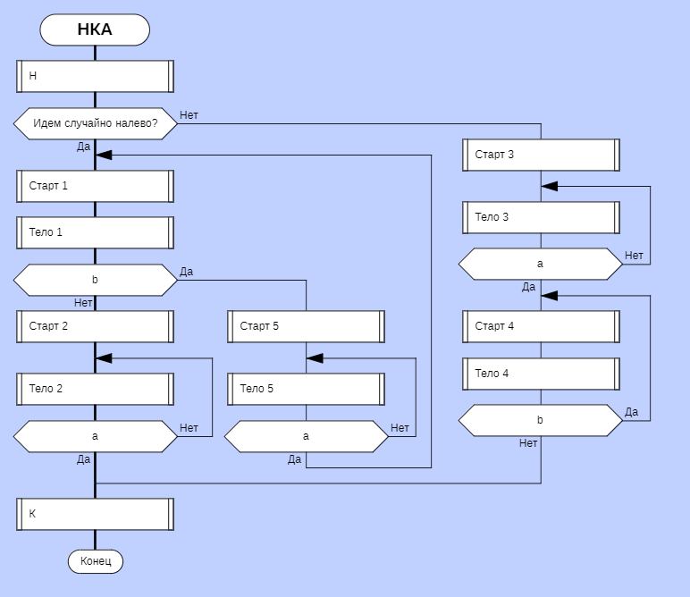 https://forum.drakon.su/viewtopic.php?t=4284#p78588Ветки силуэта (состояния) всегда "должны знать", куда перейти. Терминальным состоянием может быть только последняя ветка (т.е. деструктор). Например, в состоянии "обработка кавычек" должно быть известно, куда вернуться или следовать далее. В случаях немалого количества состояний, из которых может быть сделан переход в "обработку кавычек" и последующий возврат (или переход в отличное от исходного состояние) потребуется немалый анализ каких-то вспомогательных флагов (и в целом, состояние "должно знать" прочие возможные корреспондирующие состояния).