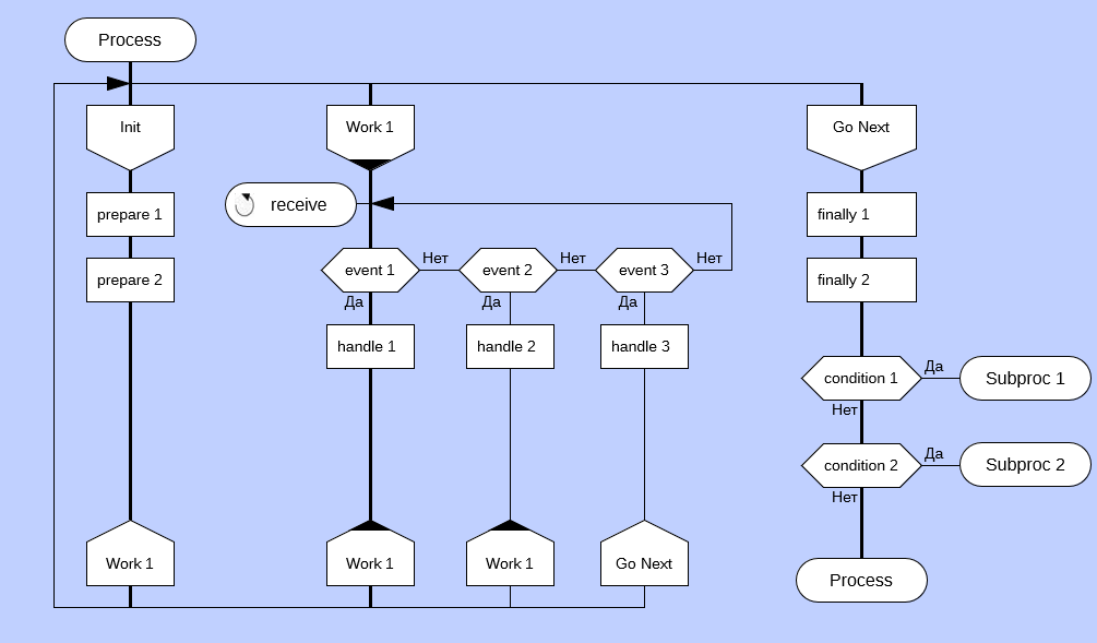 https://forum.drakon.su/viewtopic.php?f=62&t=6097#p100629Однако, необходимо различать варианты входа в ветку -- "петля" или "шаг системы", или переход из иного состояния (или стартовое состояние) -- исполнять или нет входные действия.