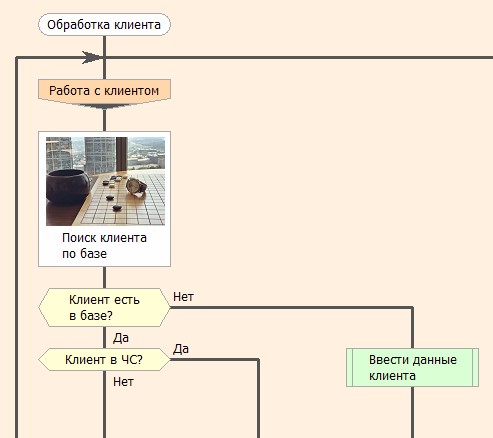 6) Преобразовать икону в нужный вид, в т.ч. в Развилку, Переключатель, ЦиклСГраницами. В Развилке, при необходимости, изменить Да-Нет, перенести правую лиану.