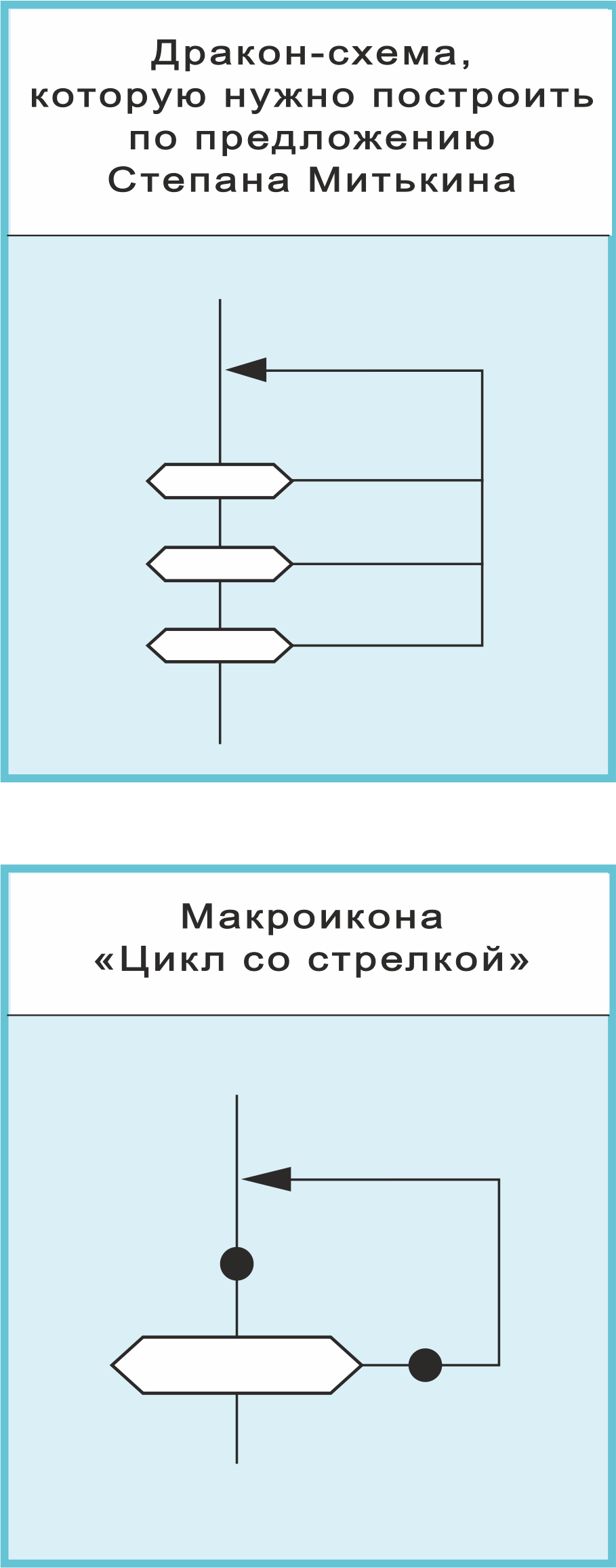 Разрешается создавать стрелку цикла только и исключительно с помощью макроиконы "Цикл со стрелкой".
