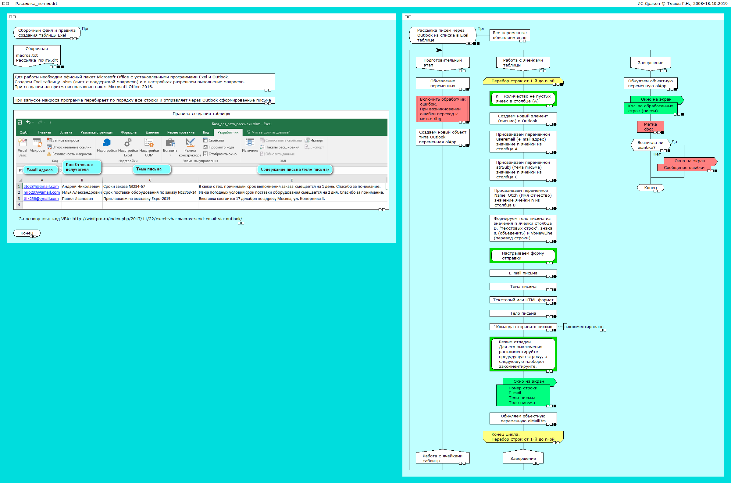 Иллюстрация - форма программы Excel вставлена в Дракон-схему Гном.
