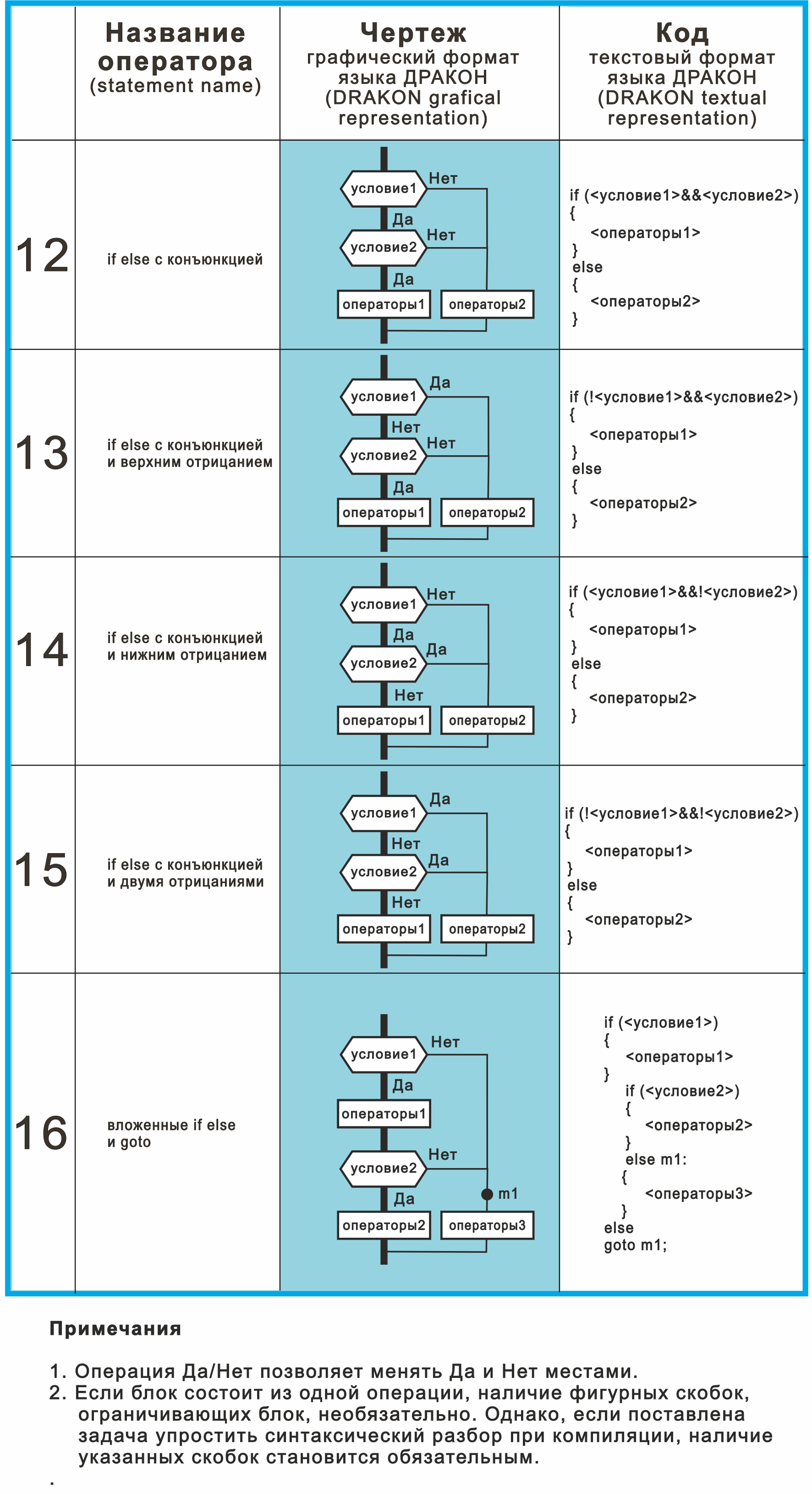 по двум причинам. Во-первых, запись без операторов максимальна близка к внешнему виду языка функциональных блоков, которыми, по-сути, являются фигуры в виде ромбиков-прямоугольников в Драконе. Во-вторых, при кодогенерации могут вообще не генерироваться цепочки команд, проверяющих условия и выполняющих переходы по коду программы, а использоваться технология условного выполнения.
