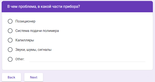 И эта программа по некоему алгоритму задает ему уточняющие вопросы, или предлагает выбрать нужный из трех-шести вариантов, или просит что-то сделать (типа перезапустить прибор или поставить свежие расходники) и в конце концов выдает решение или предлагает связаться со специалистом, потому что пользователь явно не может решить проблему (скажем, нужны запчасти).