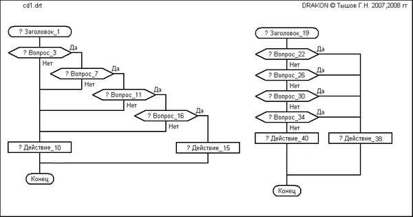 Не забывайте, что "многоэтажные формулы" в развилках в ДРАКОНе сильно не рекомендованы.