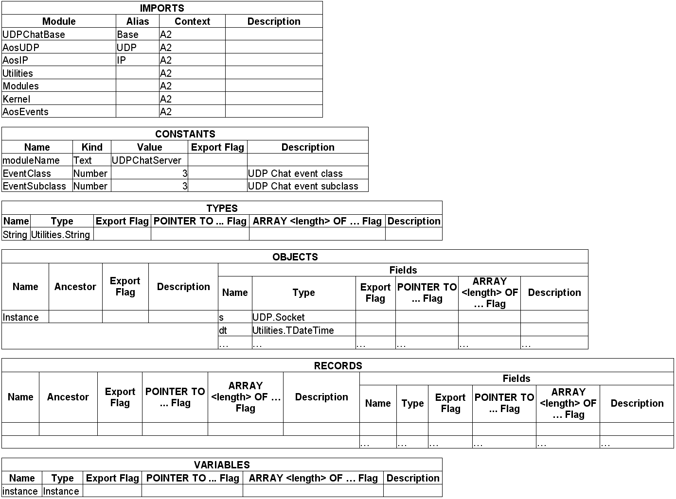 4. В процессе дальнейшего творческого поиска Вы пришли к выводу, что декларативную часть приниципиально невозможно (даже ценой любых ухищрений и искуственных приемов) описать в виде таблиц в столбцовой форме, с шапками.
