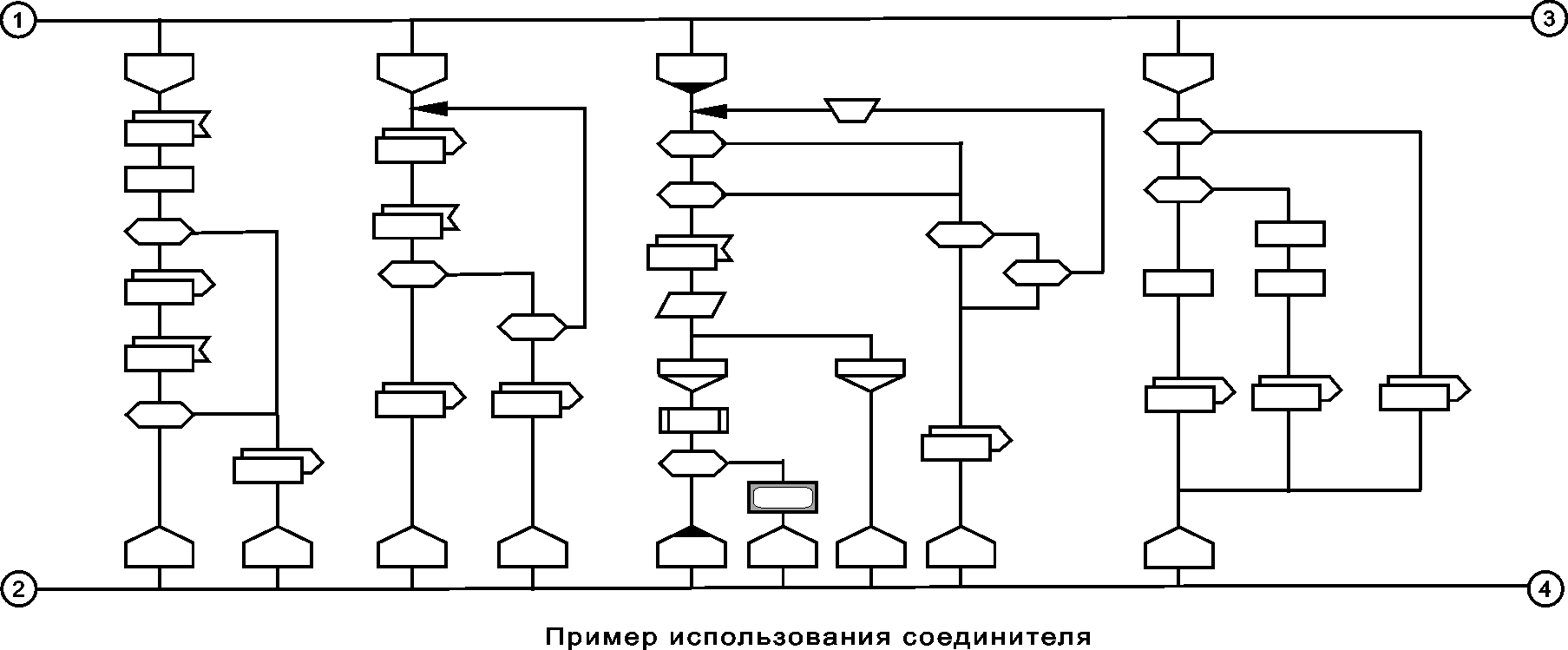 Соединитель позволяет соединять линии, находящиеся на соседних листах