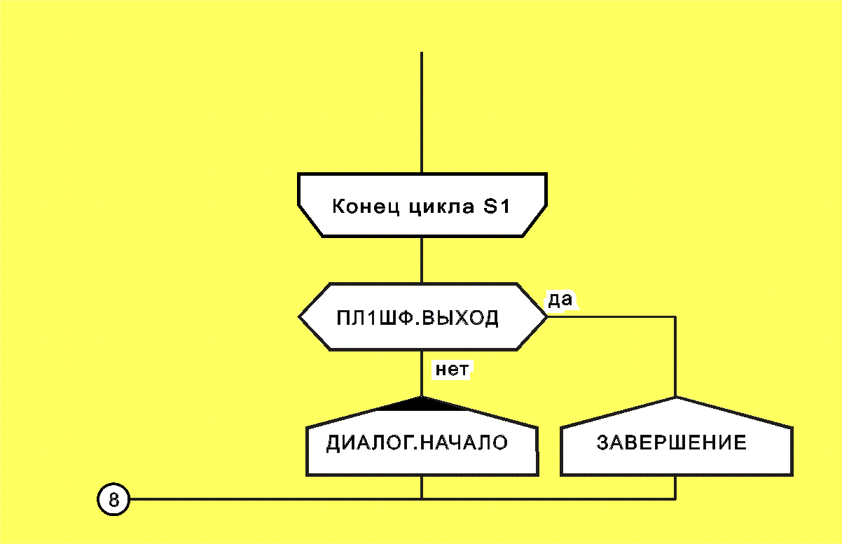 управления на ветку с иконой "Начало FOR", т.е. цикл FOR