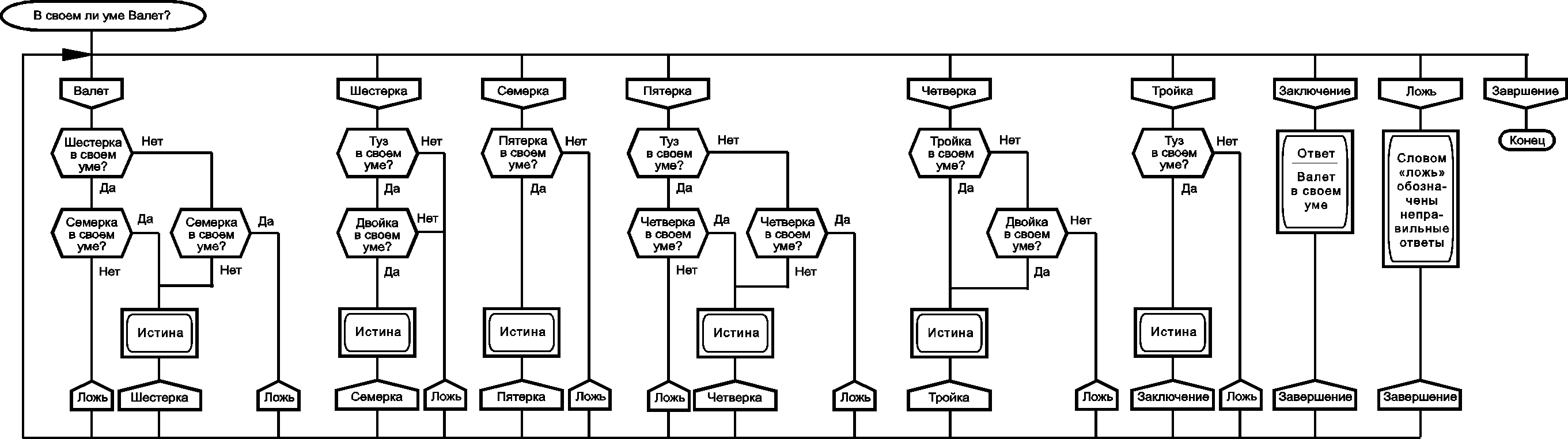 1. Валет -> Шестерка в уме? ->ДА -> Семерка в уме? ->Да ->Истина ->Переходим к Шестерке