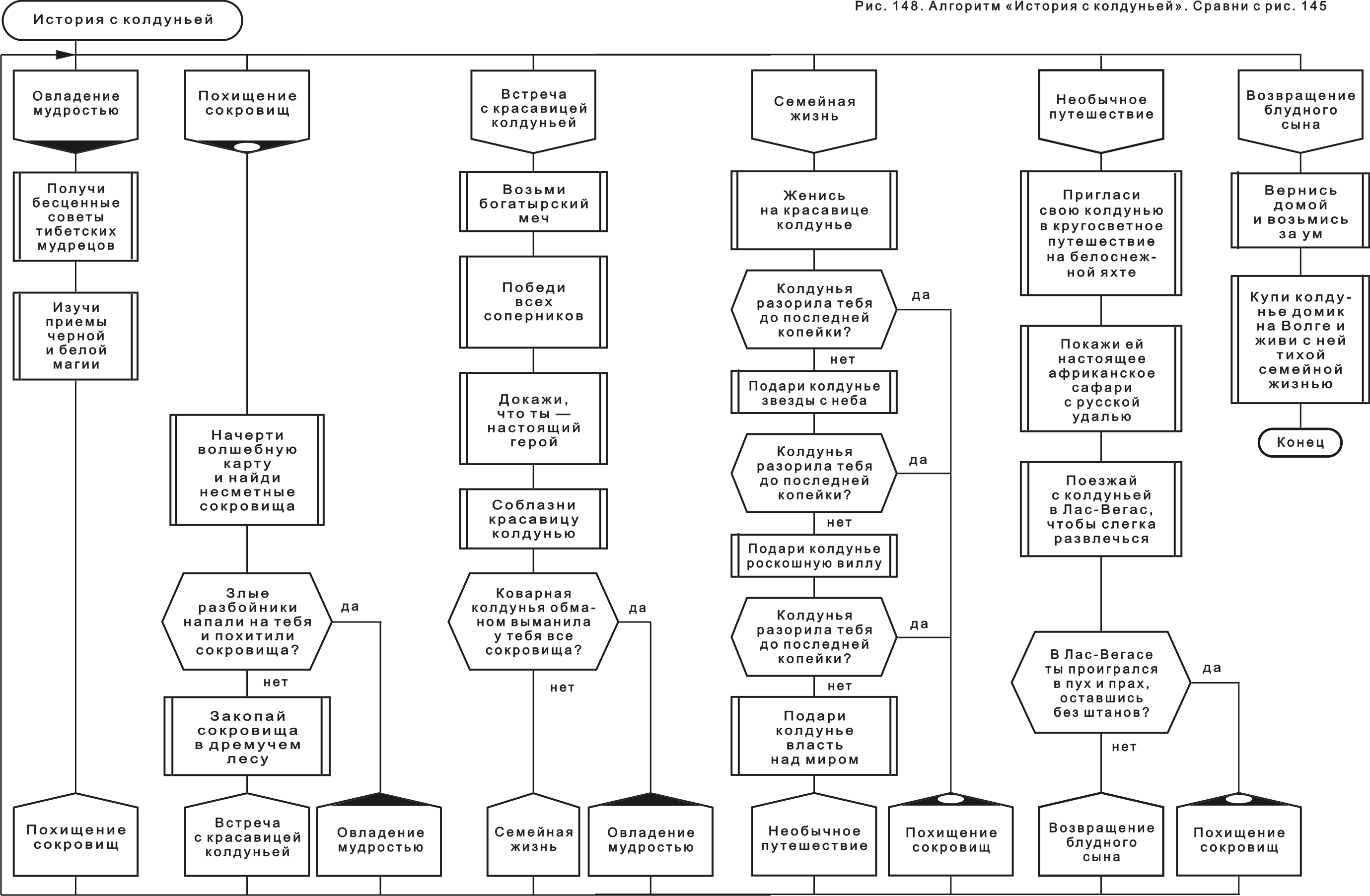 Это позволяет облегчить работу читателя подобного сложного алгоритма с непоследовательной структурой.