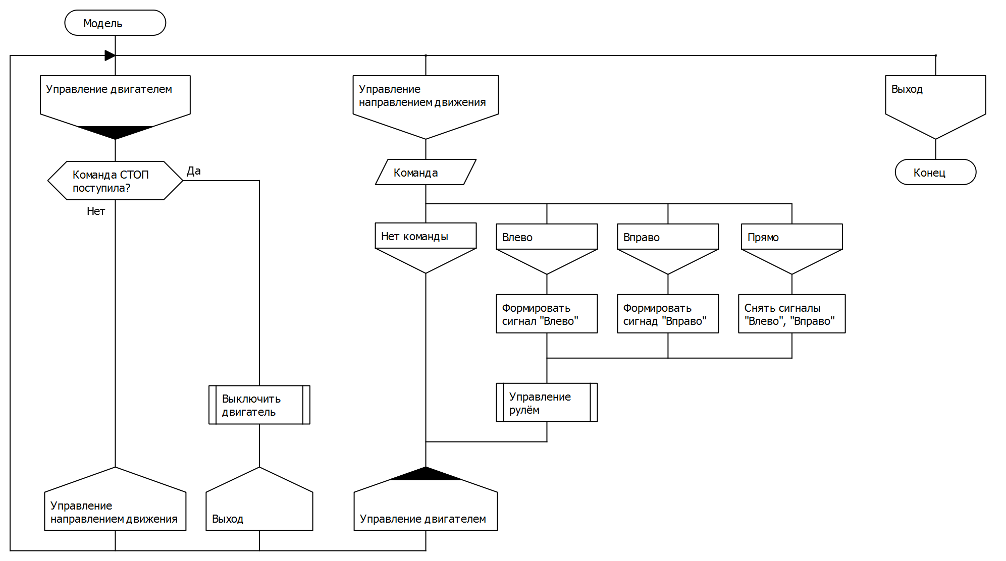 Функции проверки поступления конкретной команды и обеспечения приема команды должны быть графически отображены, Вы же говорите об их описании, искажаете назначение икон Вопрос и Выбор.