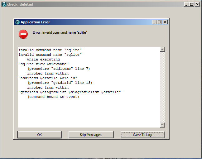 Ошибка вылетает на всех диаграммах? Это вызов sqlite - он должен вроде в tcl по умолчанию устанавливаться?
