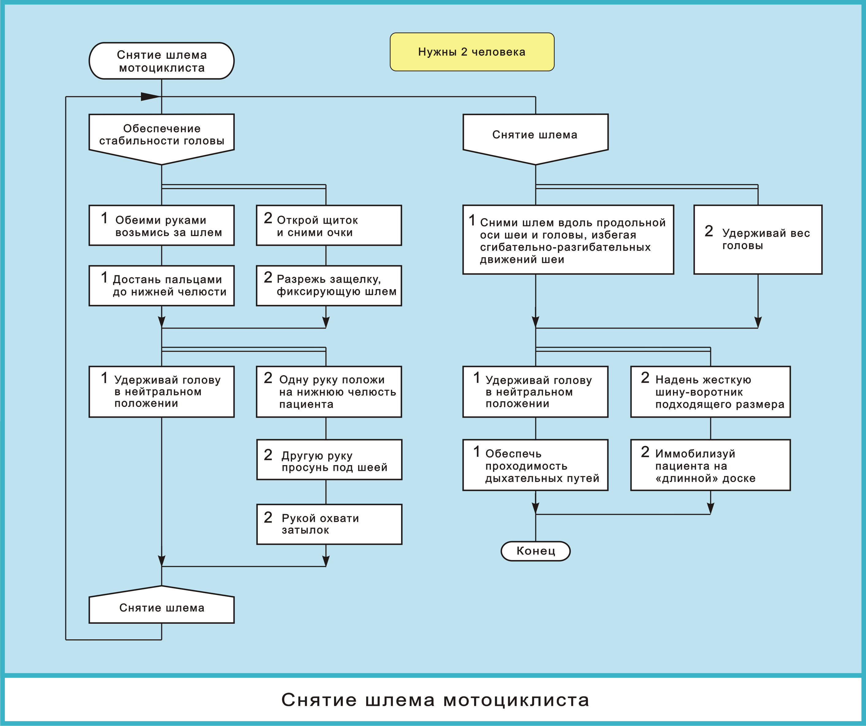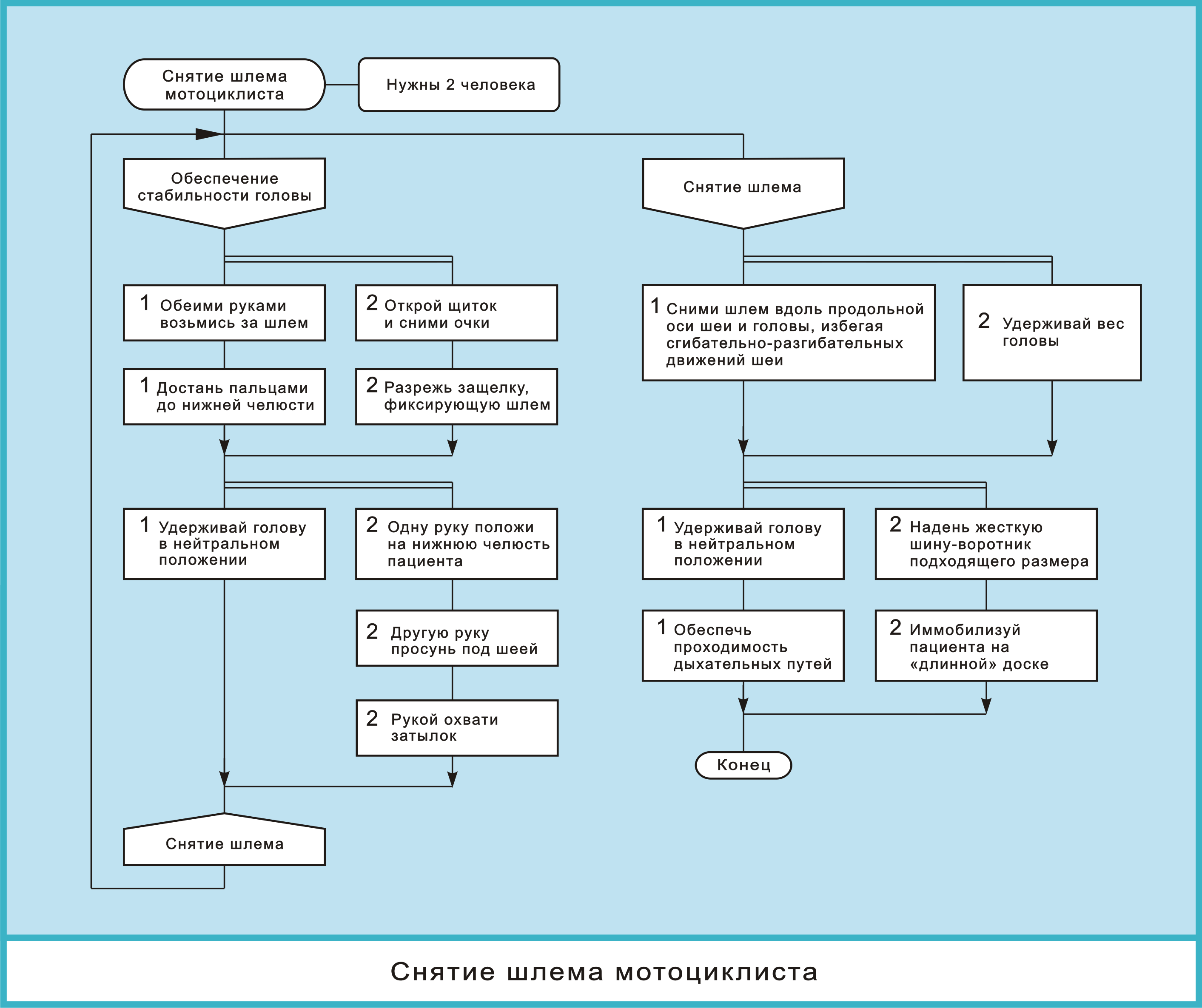 Выкладываю первый настоящий медицинский алгоритм: "Снятие шлема мотоциклиста".
