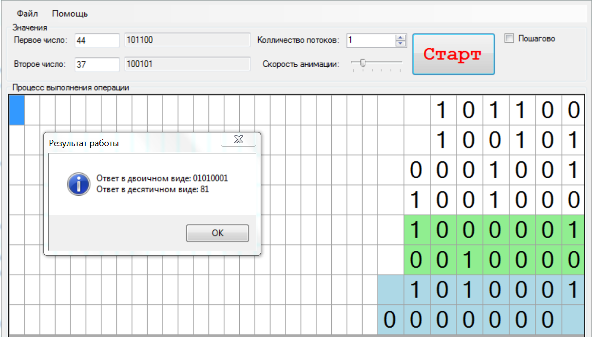 двоичной последовательной и параллельной арифметике: